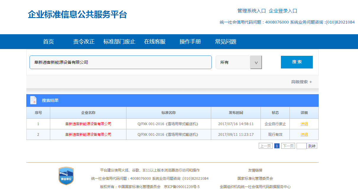阜新逍客新能源設(shè)備有限公司雪場用帶式輸送機(jī)國家企業(yè)標(biāo)準(zhǔn)信息公共服務(wù)平臺可查